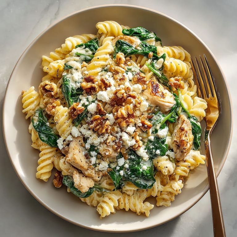 Save to Pinterest This creamy goat cheese spinach chicken pasta is my answer when I want a high protein dinner that feels comforting but comes together in half an hour. Juicy bites of chicken mingle with tender spinach and warm pasta wrapped in a tangy goat cheese sauce. It is a dish that first came to my table the night before a holiday trip and now it is saved for any week I need a small taste of French-inspired comfort.