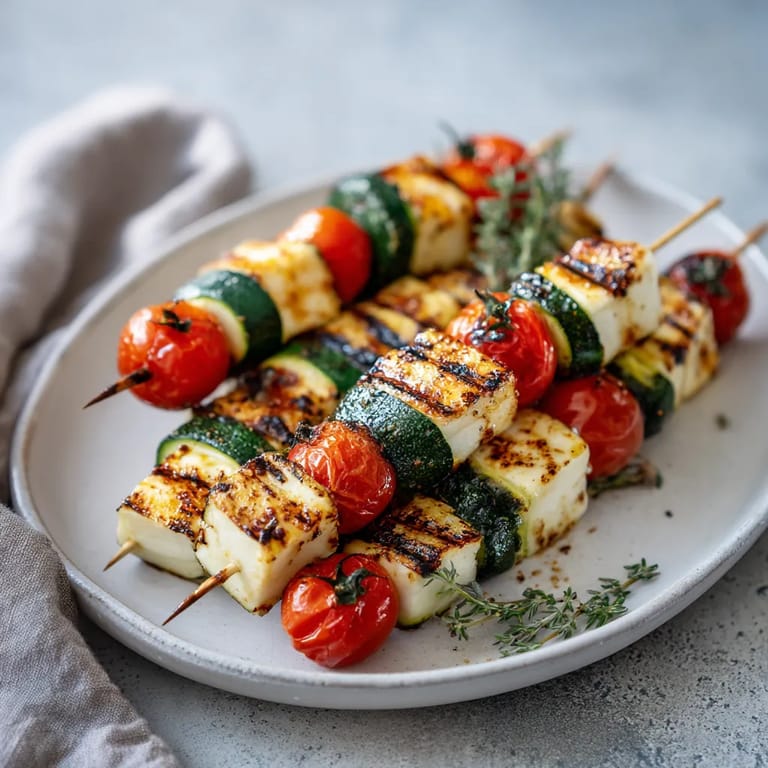 Save to Pinterest These vibrant grilled halloumi skewers bring together the comforting saltiness of halloumi cheese with the juicy bite of summer zucchini and sweet cherry tomatoes. They make a quick yet impressive vegetarian appetizer that feels right at home at any Mediterranean-inspired feast.