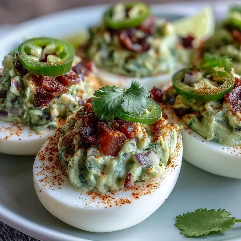 Save to Pinterest The first time I stumbled onto guacamole stuffed deviled eggs was during a casual afternoon snack session, when I had both leftover hard-boiled eggs and an unruly urge for something creamy. The kitchen was filled with the earthy scent of avocados mingling with the sharp tang of lime as I mashed both together. I remember laughing at the ridiculousness of combining two classics, but curiosity won out over skepticism. The result was a vibrant plate that looked as lively as it tasted, tiny yolk-rich boats carrying guac to waiting hands. As soon as my friend tried one, the delighted silence told me all I needed to know.