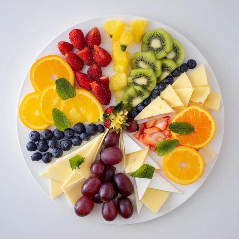 The secret is choosing cheeses that look as good as they taste. Aged cheddar's deep gold, Manchego's cream ivory, brie's pale surface, goat cheese's pure white—these aren't just flavors, they're colors in your palette. Pair each cheese visually with fruit that makes both sing: tangy goat cheese next to sweet strawberry, nutty Manchego beside tart kiwi, rich brie surrounded by bright pineapple. When taste and sight align, people don't just eat the platter, they experience it.
