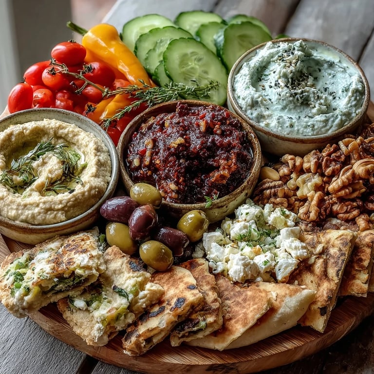 Save to Pinterest My neighbor Sophia, whose family is from Cyprus, stopped by during one of my test runs for this recipe. She quietly rearranged a few elements on my board, showing me how her grandmother would create little pathways between components. When I asked why, she explained that a proper mezze board should tell a story of its own, with each bite leading naturally to the next. Food wisdom passed through generations is something no cookbook can teach.
