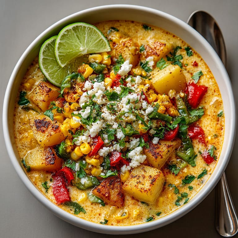 Save to Pinterest This creamy Mexican street corn chowder gives you all the flavors of classic elote but in cozy bowl form. It is a bowl I crave on chilly nights because it has the perfect mix of sweetness from corn, zippy lime, smoky spice, and plenty of creamy finish with cotija and sour cream. When I first made this for friends after a summer barbecue, everyone asked for seconds and even the leftovers were fought over.