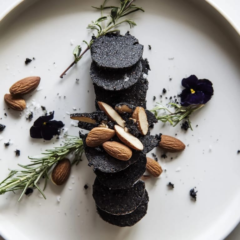 Charcoal almonds sound more complicated than they actually are, but they're the detail that makes people ask for the recipe. The earthy, almost mineral flavor of activated charcoal plays beautifully against the sharpness of aged cheddar, while the almonds themselves add a subtle bitterness that makes the cheese taste even richer by comparison. I learned this by accident when I was experimenting with different ways to darken the platter visually, but the flavor pairing stuck around because it genuinely works. Go light on the charcoal—the goal is flavor intrigue and visual drama, not a mouthful of powder.
