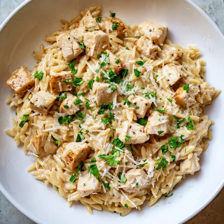 Save to Pinterest A quick and creamy one-pot meal that blends tender chicken, al dente orzo, and a zesty Cajun Alfredo sauce. Perfect for busy weeknights, this dish delivers bold flavors and comforting richness in just 30 minutes.