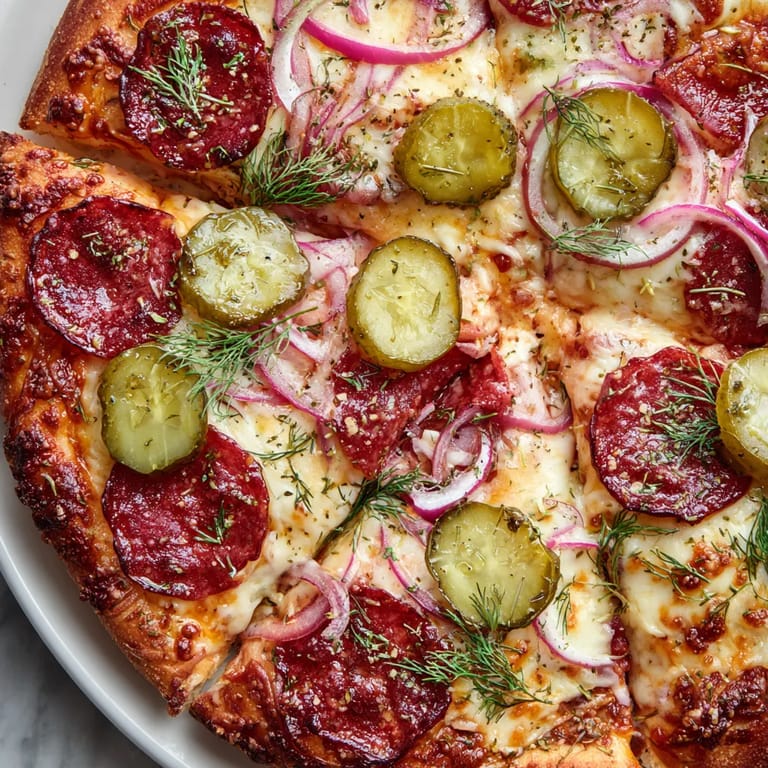 Save to Pinterest This pickle-flavored pepperoni pizza is for anyone who loves a bold punch of tang with their cheesy slice. The zesty hint from pickles, gooey mozzarella, and salty pepperoni all work together for an unforgettable twist on classic pizza night. Whether you use homemade or store-bought dough, this recipe delivers a uniquely delicious experience that quickly became a favorite in my kitchen.