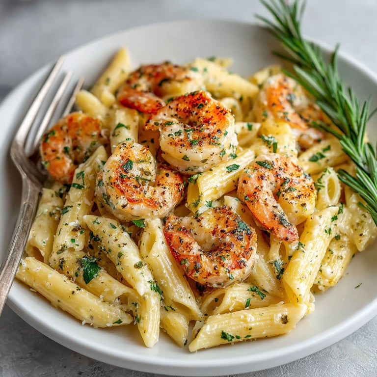 Save to Pinterest Rosemary Garlic Shrimp Pasta is a flavorful dinner that comes together quickly with simple Mediterranean ingredients. Plump shrimp simmer in a creamy garlic sauce lightly scented with fresh rosemary tossed with tender penne—it is a dish I rely on when I want something both comforting and bright for weeknights or company. The luscious cream sauce is perfectly balanced by herby depth and juicy shrimp.