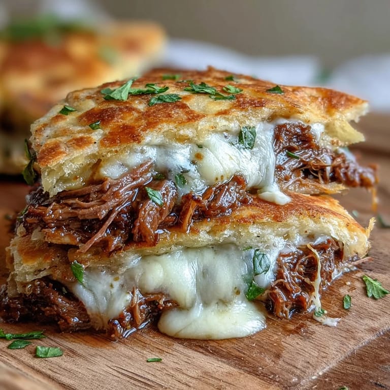 I made this for a group of friends who showed up hungry after a long hike. They were skeptical at first, naan for a pot roast sandwich, but the moment they tasted that first cheesy, juice soaked bite, the room went quiet. Someone called it a game changer. I just called it lucky improvisation.
