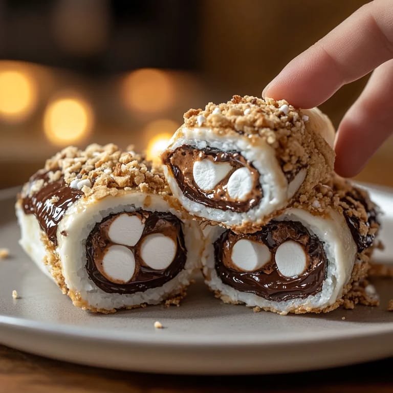 Save to Pinterest This whimsical S'mores Sushi transforms the classic campfire treat into an adorable, sliceable dessert that's perfect for parties, movie nights, or whenever you're craving that iconic chocolate-marshmallow-graham cracker combination without the mess.
