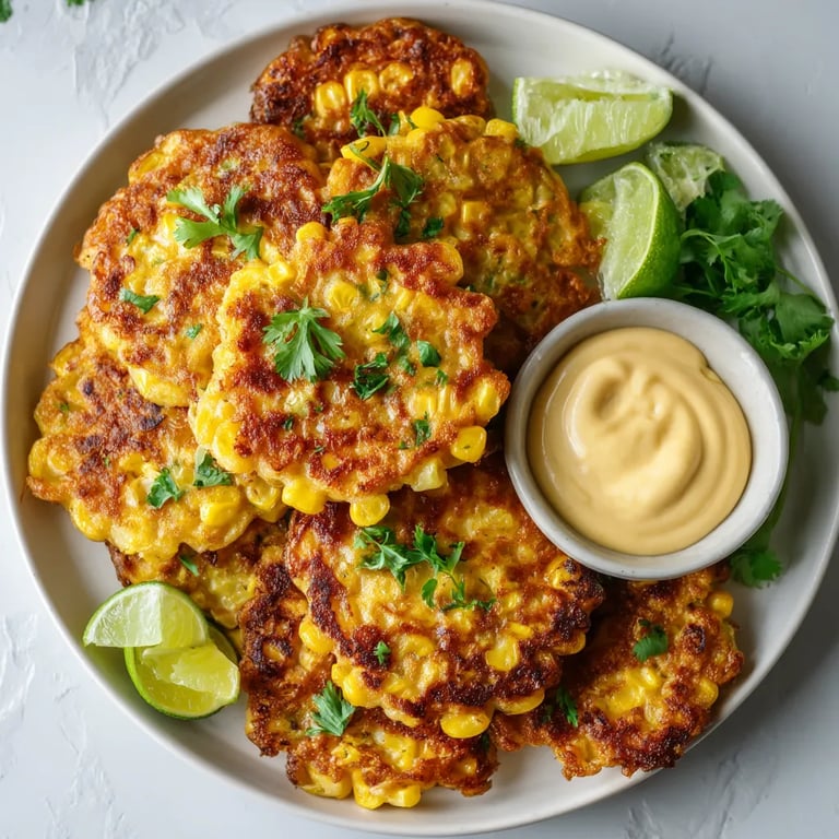 Save to Pinterest These crispy sweet corn fritters with chili-lime mayo are my go-to dish whenever I need a fast crowd-pleaser. Bursting with the sweetness of corn and a kick from the zesty dipping sauce, they make the perfect snack or appetizer for any get-together.