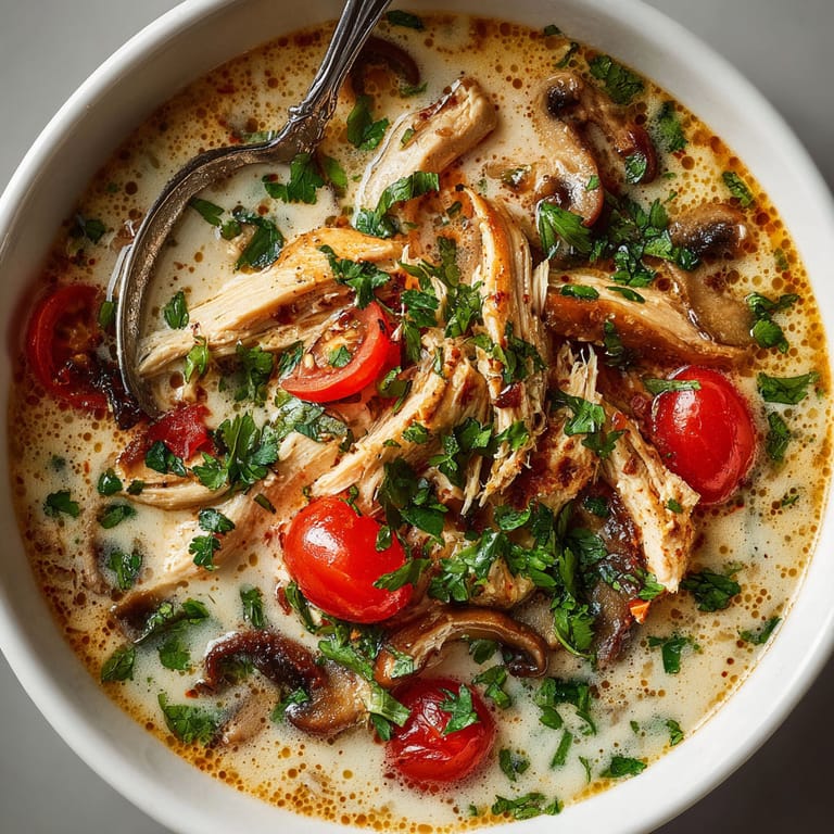 You can easily swap the chicken for tofu or shrimp for a pescatarian version For a vegetarian option use quality vegetable stock and replace fish sauce with soy sauce If galangal or kaffir lime leaves are hard to find substitute with extra ginger and a splash of lime zest though the flavor will be different