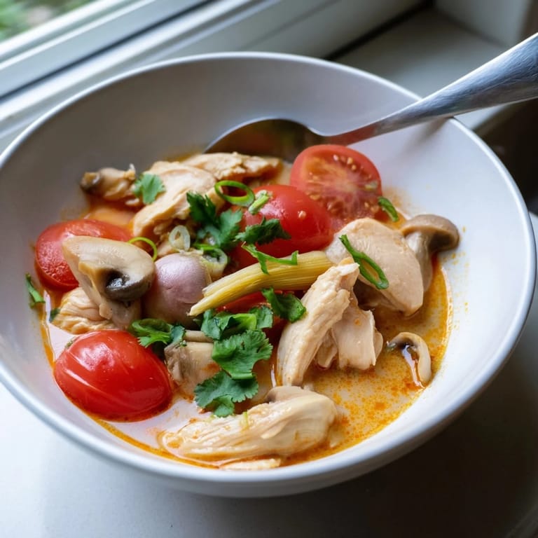 While chicken thighs or breasts are traditional, shrimp transforms this into Tom Yum Goong, another beloved variation. Firm fish fillets, tofu, or even mixed seafood work beautifully. For vegetarian versions, use vegetable stock and substitute fish sauce with soy sauce or a vegetarian fish sauce alternative.