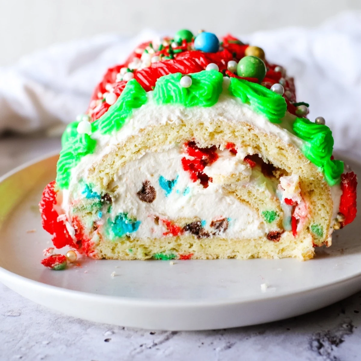 Save to Pinterest This cake roll brings out the joy of the season by combining simple ingredients and creative flair. Whether it’s for a family gathering, office party, or holiday potluck, this dessert adds a splash of color and whimsy that everyone will enjoy. Decorating with bright frosting and sprinkles invites you to get playful and artistic, capturing the fun spirit of ugly sweaters in a sweet, edible form.