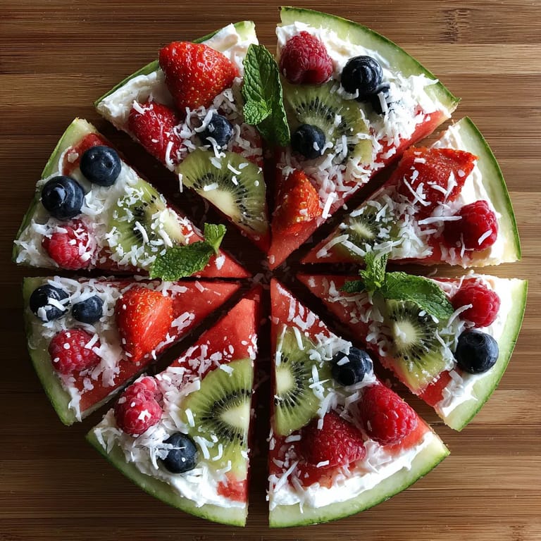 Watermelon is enjoyed worldwide as a symbol of summer celebrations. In some Mediterranean countries, fruit and yogurt are classic pairings for breakfast or dessert. By turning a watermelon slice into a “pizza,” you blend playful Western presentation with time-honored traditions of fresh fruit serving.